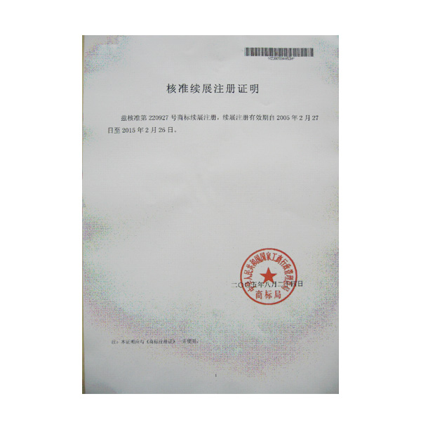 “TSZ” 牌商標(biāo)續(xù)展證明:2005年2月27日第二次續(xù)展